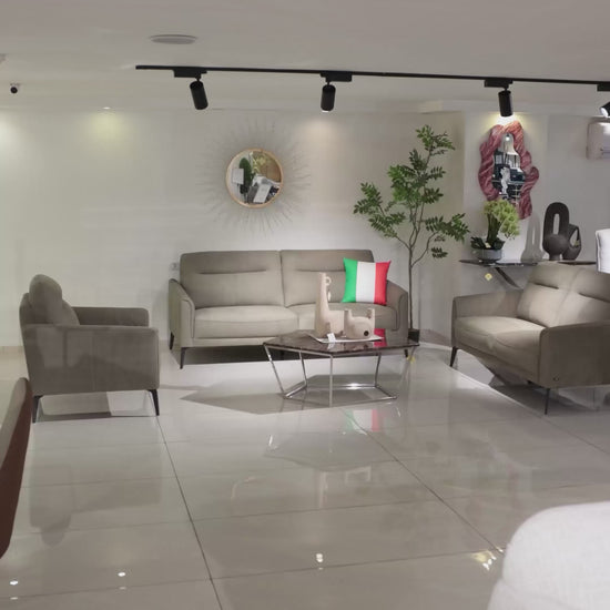 الخامات: جلد طبيعي عالي الجودة يمنح مظهر فاخر وسهل التنظيف، مع هيكل داخلي متين لضمان تحمل الاستخدام لفترة طويلة، وأرجل ثابتة تعطي توازن وأناقة بنفس الوقت.
